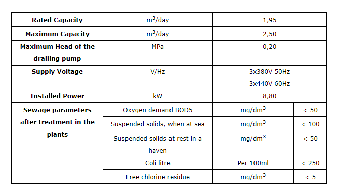 LK-type Sewage treatment plants are intended for biological treatment and disinfection of fecal sludge (blackwater) and sanitary sewage (greywater) on ships with unrestricted voyage. The device can be made of black powder coated steel or stainless steel and is equipped with pumps, air compressors, the necessary fittings and a switchgear to control the entire wastewater treatment process. The device operates automatically.